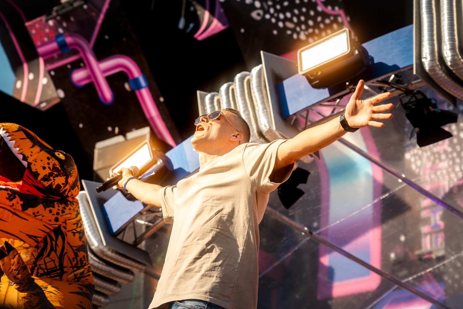 Der Tag verging im Rausch. Menschen, die sich vorher nie begegnet sind, tanzen Schulter an Schulter, teilen Wasserflaschen, tauschen Armbänder und Handynummern. Gegen Mitternacht kam der Moment, auf den alle warteten: die Endshow.